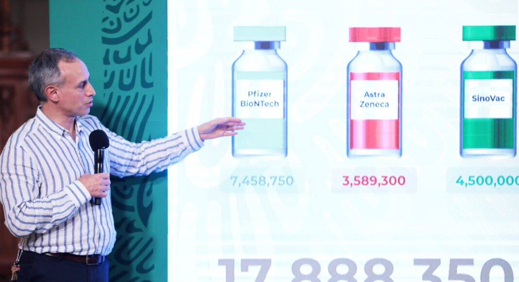 Hugo López-Gatell, destacó que la velocidad de la vacunación se ha mantenido por arriba del medio millón, pues este miércoles se administraron 505 mil 338 dosis, con un acumulado de 12 millones 912 mil 963 vacunas aplicadas en el país, de las 17 millones 888 mil 350 recibidas hasta la fecha.
